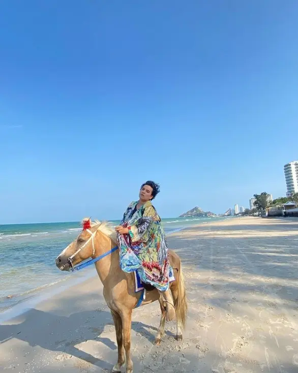 งานนี้พี่เอยังได้มีการโพสต์ภาพขณะที่กำลังขี่ม้าชิมวิว พร้อมแคปชั่นว่า “ม้าบอกว่า เหงา เพราะทั้งหาดมีกันแค่เรา ❤️❤️ ทำเอาแฟนๆต่างแห่ชมว่าพี่เอ หุ่นสวย แซ่บกันแบบรัวๆเลยทีเดียว