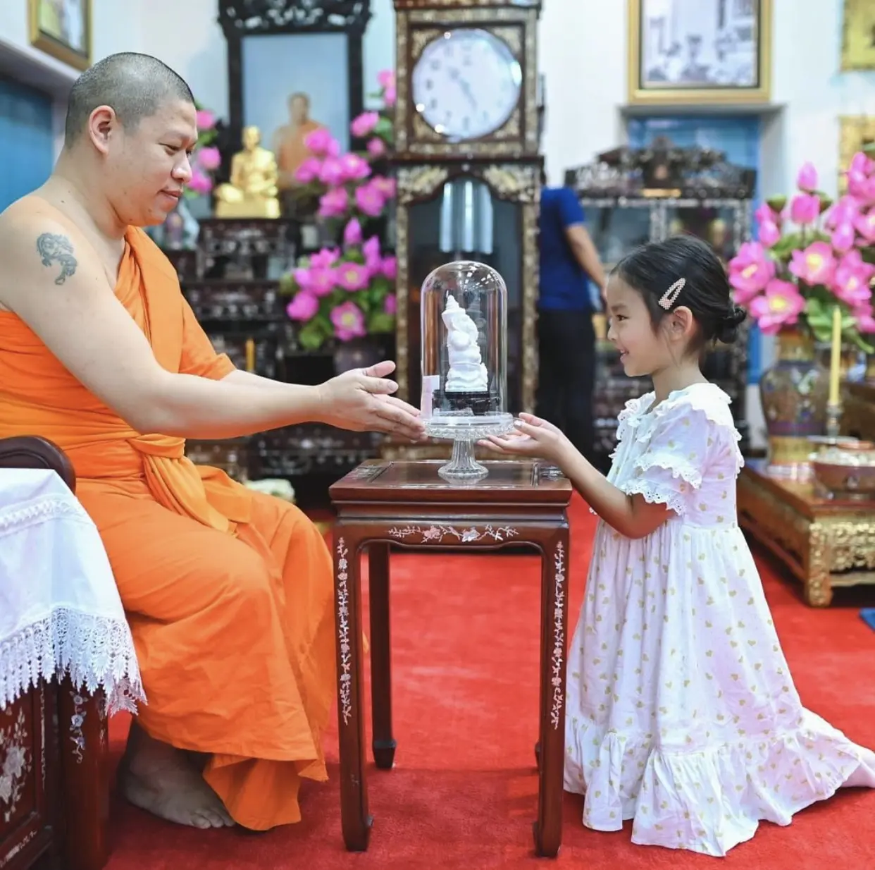 ‘ปีนี้นอกจากจะโตขึ้น จุดเทียนบูชา ประเคนของพระเองได้แล้ว ยังสนทนาธรรมด้วยนะคะ ? ปีใหม่โชคดีได้พระธรรมรัตนากร เจ้าอาวาสวัดวัดพระเชตุพนวิมลมังคลาราม พระเถระ พระสงฆ์ และพระณัฏฐ์ ชินวังโส เมตตาทำพิธีให้ และได้พระพิฆเนศเป็นของขวัญวันเกิดอีกด้วยค่ะ ?????? Peamai_Avarin’