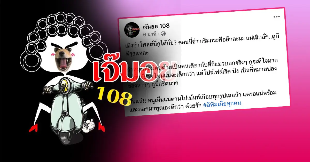 ล่าสุดเจ๊มอย108 ได้ขยายความเพิ่มโดยโพสต์ใหม่ว่า เมิงจำโพสต์นี้กูได้มั้ย? ตอนนี้ข่าวเริ่มกระพืออีกละนะ แม่เลิกลั่ก..ดูมี