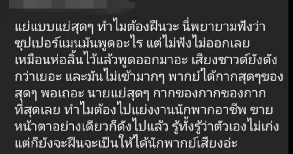 เสียงวิจารณ์จากผู้ชมจำนวนมากเริ่มพุ่งเป้าไปที่ “เสียงพากย์” ซึ่งหลายคนรู้สึกว่า ไม่สอดคล้องกับคาแรกเตอร์ของ Superman ที่ควรเปี่ยมไปด้วยความสุขุม หนักแน่น และมีภาวะผู้นำ แต่กลับถูกมองว่า “ขาดอินเนอร์” คล้ายการ “อ่านบทมากกว่าการแสดงอารมณ์” พร้อมตั้งคำถามถึงประสบการณ์ของเอมที่อาจยังไม่มากพอสำหรับบทนำสำคัญเช่นนี้