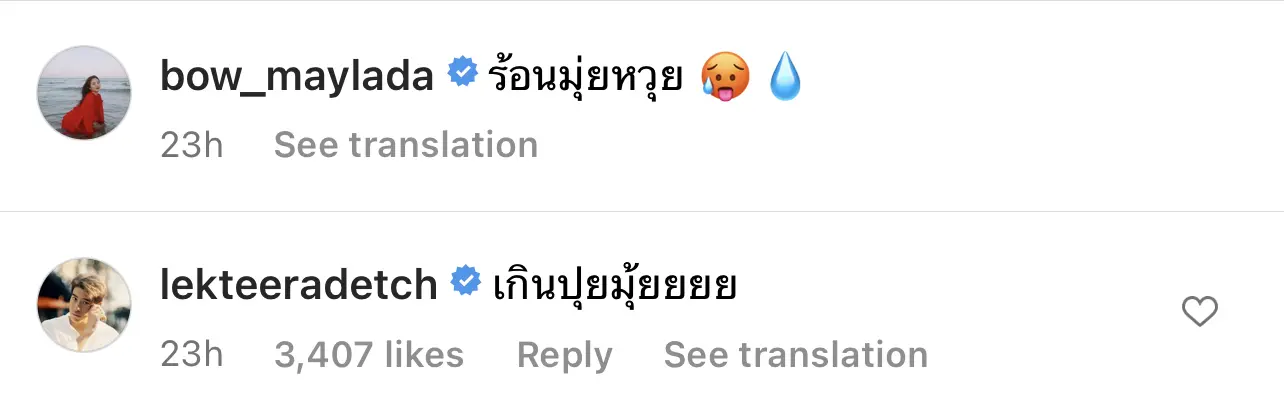 เรียกได้ว่างานนี้เอาทำแฟน ๆ ต่างพากันเข้ามากดไลค์กันอย่างไม่น้อยเลยทีเดียว ขณะเดียวกันด้านหวานใจหนุ่ม ดาราฮอต ก็ได้เข้ามาคอมเมนต์ในโพสต์ดังกล่าวกันอย่างทันทีว่า