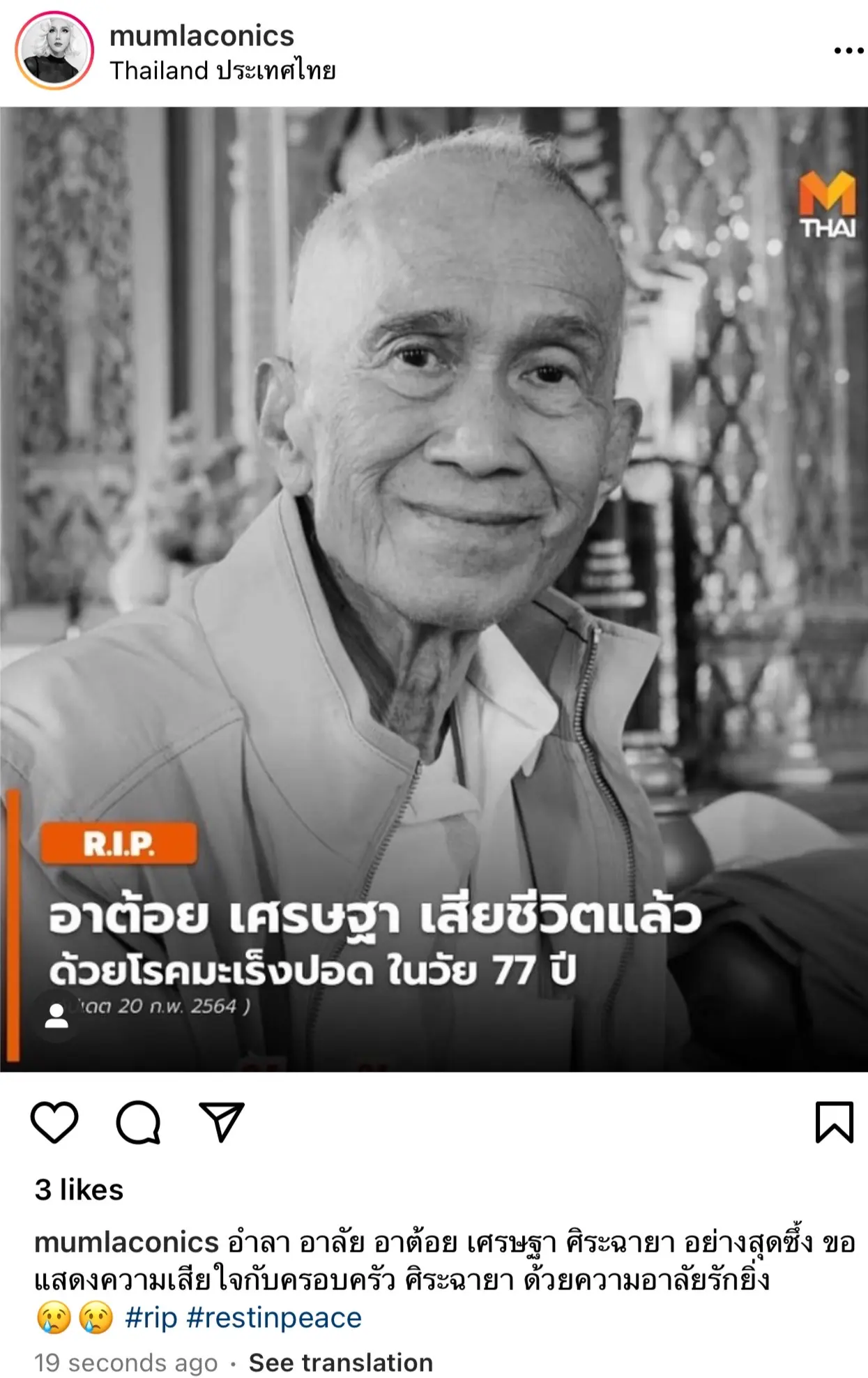 คนบันเทิงออกมาร่วมอาลัย อาต้อย เศรษฐา กันเป็นจำนวนมากหลังเสียชีวิตลงด้วยมะเร็งปอดในวัย 77 ปี