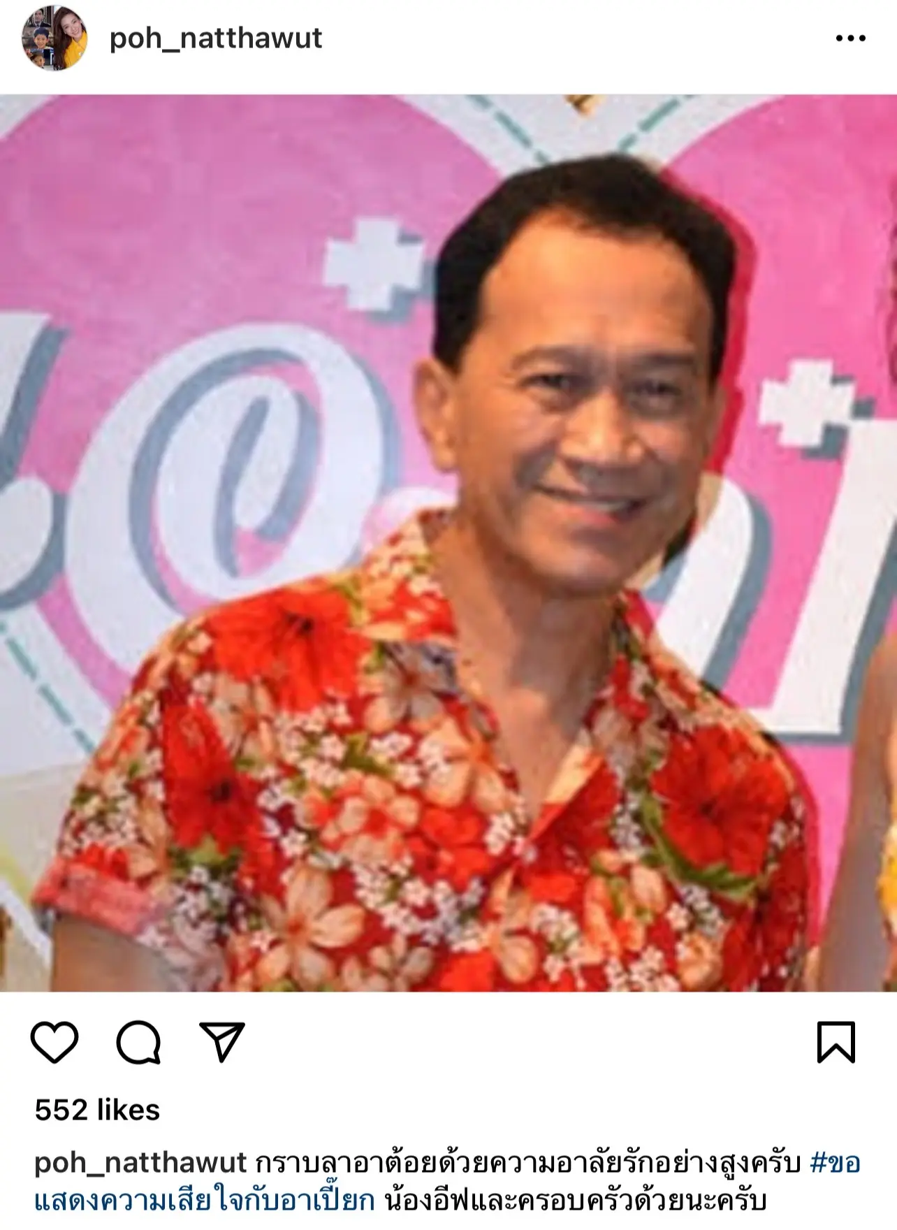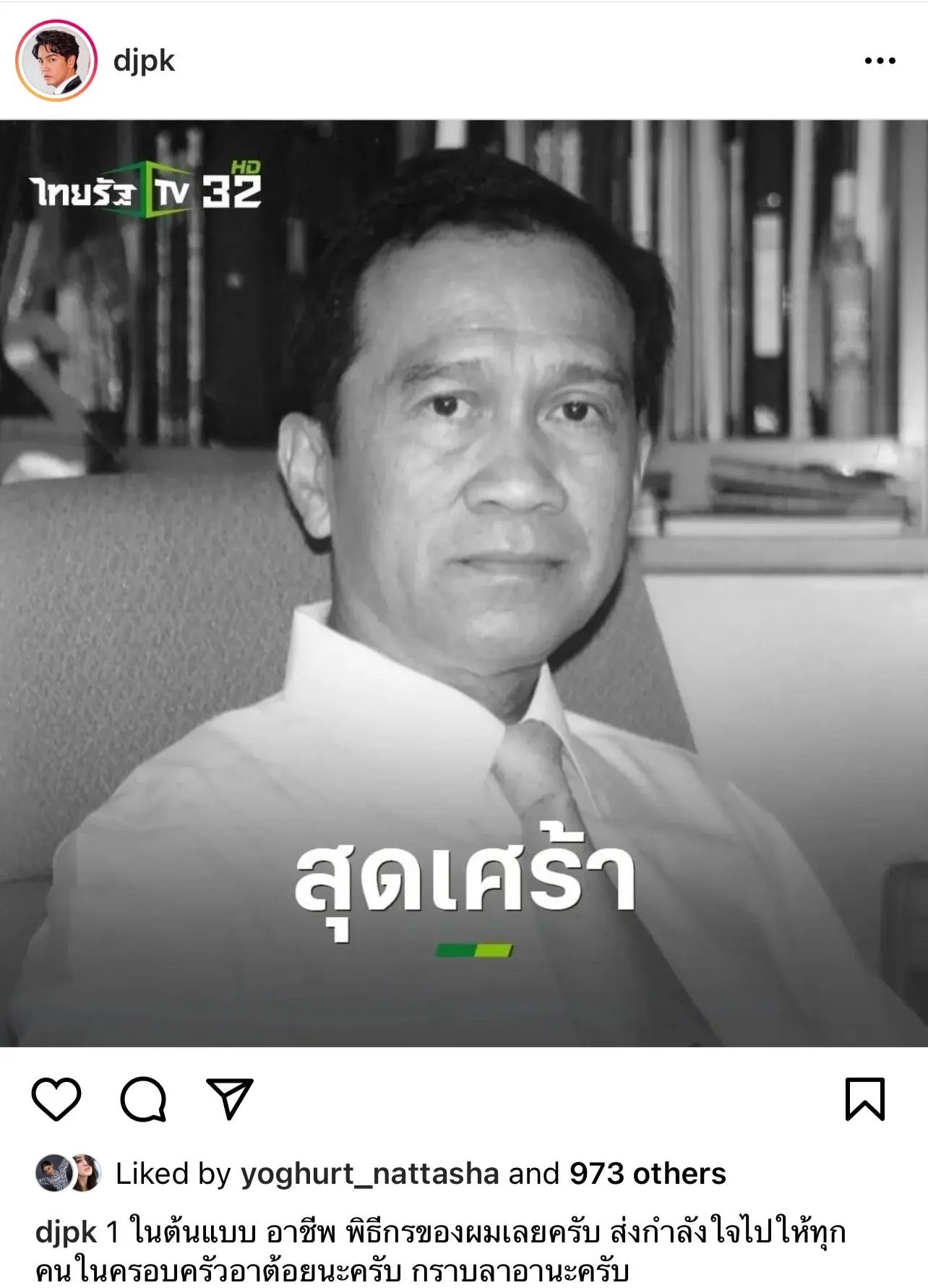 อีกทั้งด้าน มัม ลาโคนิค ,เกรท วรินทร ,ตั๊ก มยุรา ,ป๋อ ณัฐวุฒิ และ ดีเจพีเค ก็ได้ออกมาโพสต์ไว้อาลัยผ่าน Instagram ส่วนตัวของเขาอีกด้วย