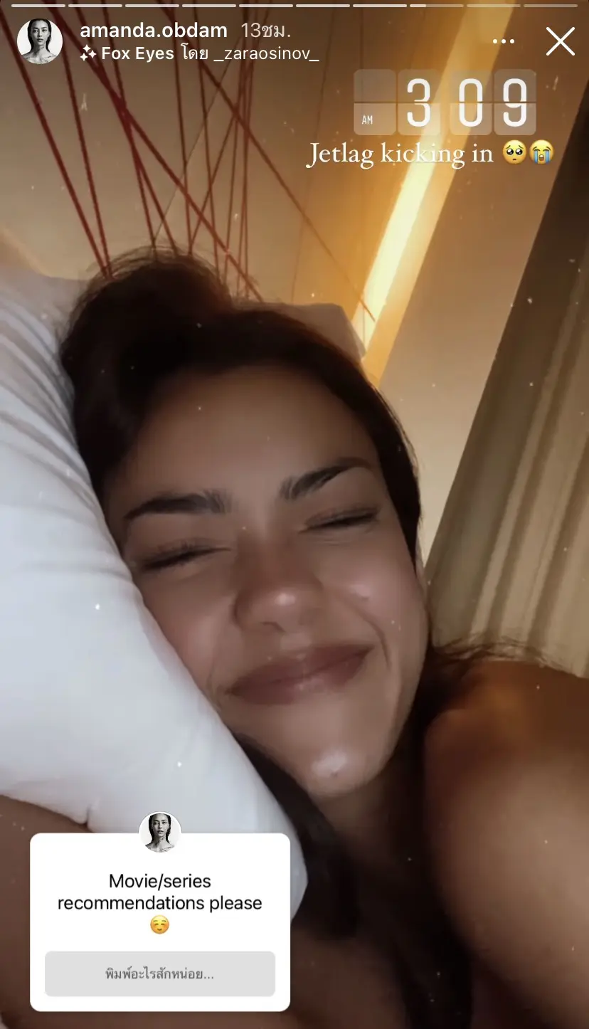 โดยด้านสตอรี่อินสตาแกรมของอแมนด้า ได้มีการโพสต์ภาพน่ารักๆ พร้อมกับพิมพ์ข้อความถึงแฟนๆให้ช่วยแนะนำหนัง / ซีรีส์ให้กับเธอในเวลา ตี 3.09 น. นอกจากนี้เธอยังได้มีการถ่ายภาพท้องฟ้า วิวสวยๆ พร้อมข้อความว่า “GOOD MORNING” ในเวลา ตี 5.38 น. อีกด้วย