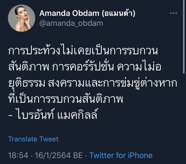 แม้ว่าจะกำลังเตรียมตัวประกวดอยู่ แต่ อแมนด้า MUT2020 หรือ อแมนด้า ชาลิสา ออบดัม ก็ไม่พลาดที่จะออกมาสนับสนุนประชาธิปไตยอยู่เรื่อยๆ อย่างล่าสุดที่เพิ่งจะมีเหตุการณ์ม๊อบไปหมาดๆ เมื่อวานนี้ ทางด้านสาวอแมนด้าเอง เมื่อเห็นการใช้ความรุนแรงของทางเจ้าหน้าที่ตำรวจ ก็ไม่สามารถที่จะอยู่เฉย ต้องขอออกมาพูดอะไรบ้าง !