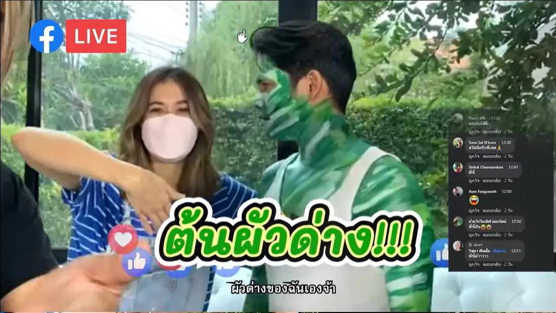 เอมี่ กลิ่นประทุม เรียกเสียงฮากลางไลฟ์สดขายต้นไม้ ลงทุนเพนต์ตัวเขียวสามีทั้งตัว งานนี้คัฟเวอร์เป็นต้นไม้ใบด่าง หวังอัปค่าตัวสามี ซี ศิวัฒน์