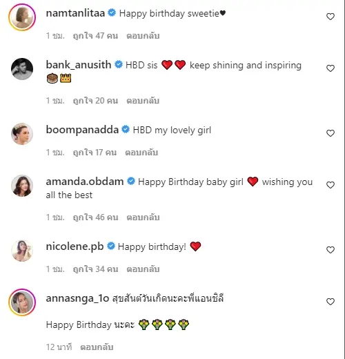 โพสต์นี้ก็เลยมีเพื่อน ๆ นางงามเข้ามาอวยพรวันเกิดให้กับ แอนชิลี เป็นจำนวนมาก รวมถึง 2 ตัวเต็งอย่าง นิโคลีน และ แอนนา เสืองามเอื่อม ก็เช่นกัน