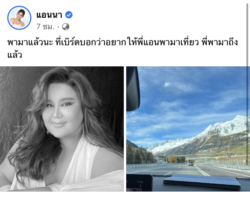 ล่าสุดตอนนี้ แอนนา ก็ได้เดินทางถึงประเทศสวิตเซอร์แลนด์แล้ว พร้อมกับโพสต์ข้อความในเฟซบุ๊กว่า “พามาแล้วนะ ที่เบิร์ดบอกว่าอยากให้พี่แอนพามาเที่ยว พี่พามาถึงแล้ว” พร้อมกับโพสต์รูปของ เบิร์ด กมล คู่กับวิวของประเทศสวิตเซอร์แลนด์