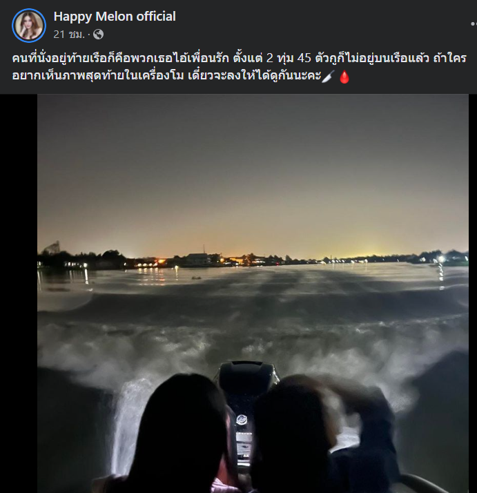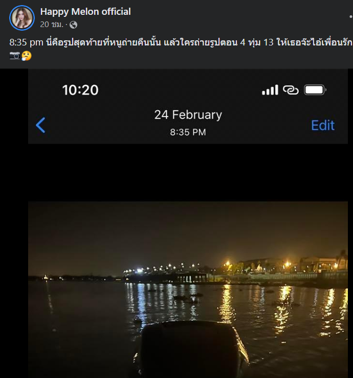 - ตามติดมือปริศนา! เคลื่อนไหวเฟซบุ๊ก แตงโม นิดา ล่าสุดมาอีกหนึ่ง ‘นี่คือรูปสุดท้ายที่หนูถ่ายคืนนั้น’