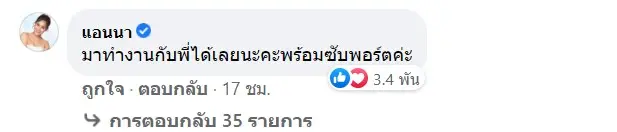แต่ที่ถูกกดไลก์จนกลายท็อปคอมเมนต์ คือความคิดเห็นของเน็ตไอดอลตัวแม่ แอนนา ทีวีพูล ที่หลายคนมองว่าเป็นการให้โอกาสและช่วยเหลือเพื่อนมนุษย์ด้วยกันอย่างแท้จริง โดยเจ้าตัวได้โพสต์ว่า ‘มาทำงานกับพี่ได้เลยนะคะ พร้อมซัปพอร์ตค่ะ’
