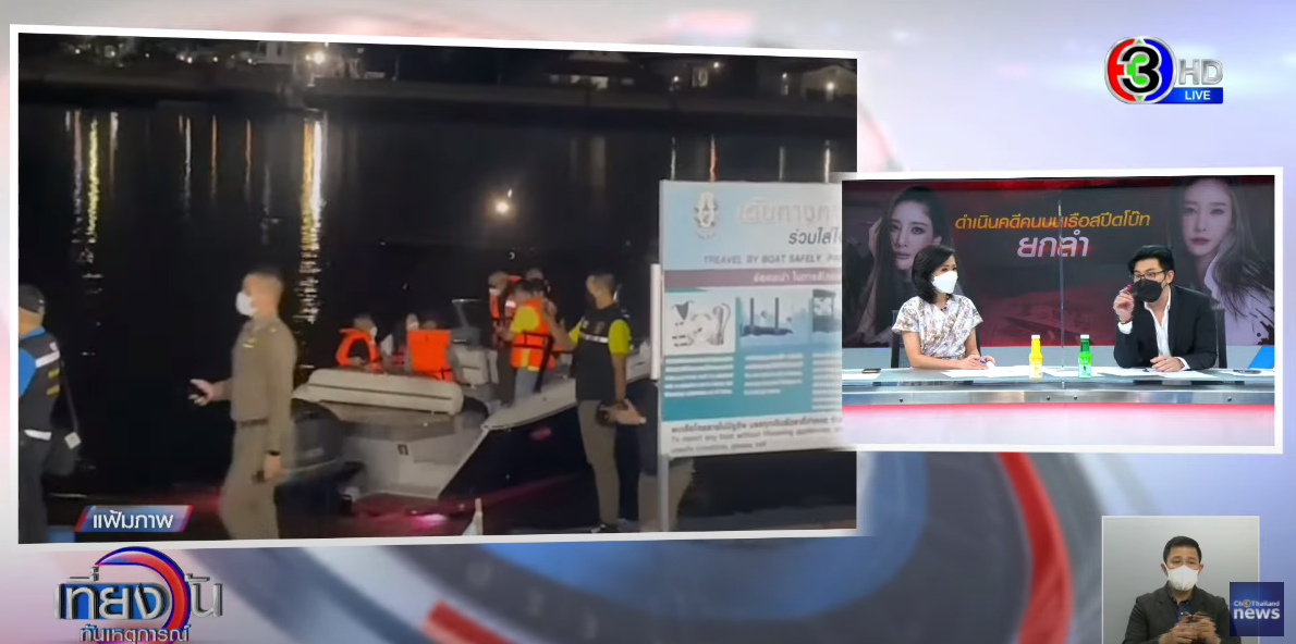 ‘ส่วน 5 คนที่อยู่บนเรือ มีคนไปพาดพิงเขา เขาก็อาจจะมีการฟ้องกลับด้วยเหมือนกัน ถ้าตำรวจแถลงออกมา ข้อเท็จจริงไม่ได้เป็นไปอย่างที่มีคนไปกล่าวว่าเขา เท่าที่ผมทราบมานะ แอนนา, หมอของขวัญ หรือใครต่อใคร ฝากเตือนไปเลยแล้วกัน ผมได้ยินแว่ว ๆ มาว่าเขาจะมีการตั้งทนาย เหมือนไปพูดแล้วไม่ได้เป็นไปตามข้อเท็จจริง ต้องรอดูเอง ผมว่าเรื่องนี้ไปกันอีกเยอะ’