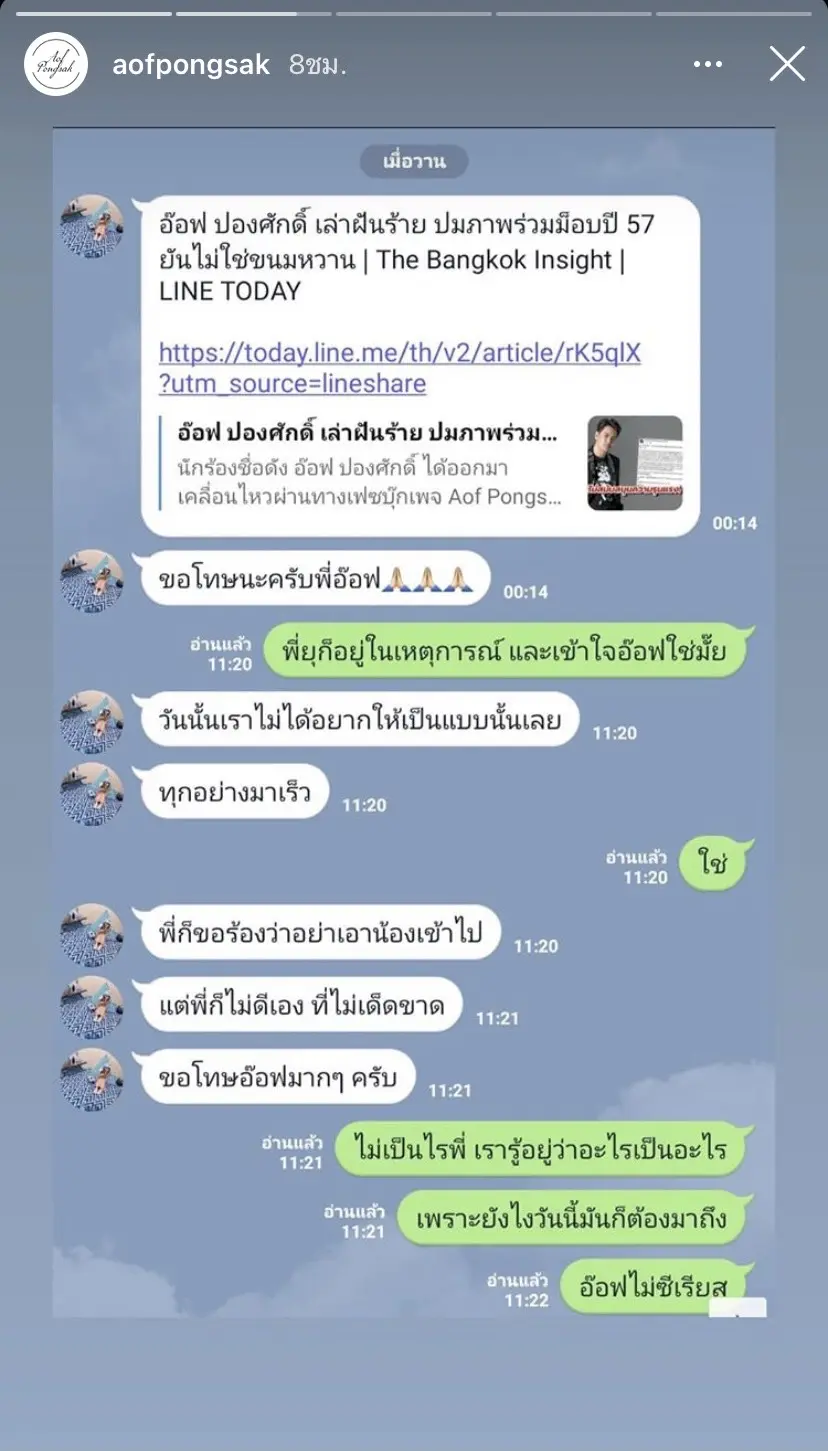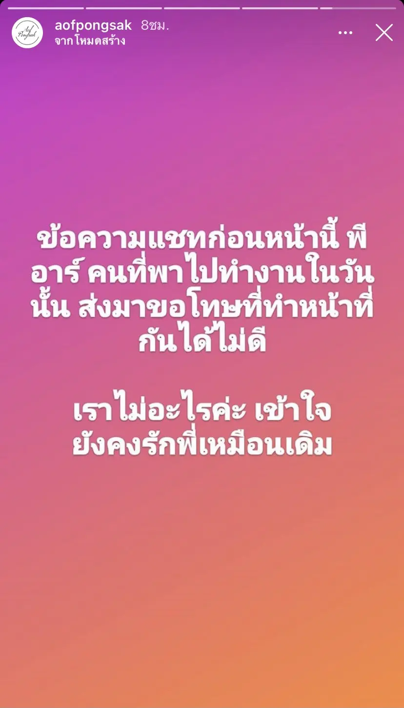 ล่าสุด เจ้าตัวได้มีเคลื่อนไหวอีกครั้ง โดยแคปแชทที่สื่อสารกันต่อปมที่เกิดขึ้น พร้อมโพสต์สตอรี่ทางอินสตาแกรม