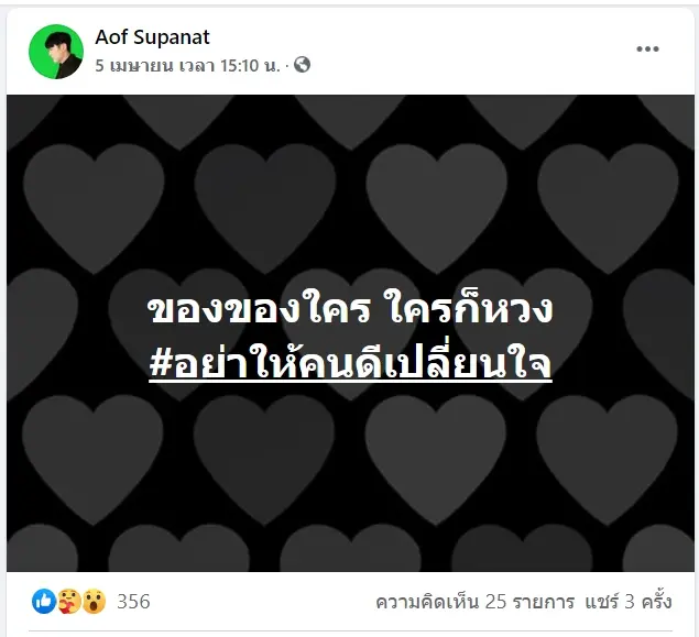 ซึ่งล่าสุด อ๊อฟ ศุภณัฐ ซึ่งเป็นแฟนหนุ่มของ ธัญญ่า อาร์สยาม นักร้องสาวลูกทุ่ง ที่มีประเด็นกับ เนเงิน ในครั้งนี้ก็ได้ออกมาโพสต์ข้อความผ่านโพสต์ข้อความในเฟซบุ๊ก Aof Supanat เป็นครั้งแรกหลังเกิดข่าวนี้ขึ้นมา ซึ่งได้ระบุข้อความว่า” ของของใคร ใครก็หวง” พร้อมแฮชแท็กว่า #อย่าให้คนดีเปลี่ยนใจ