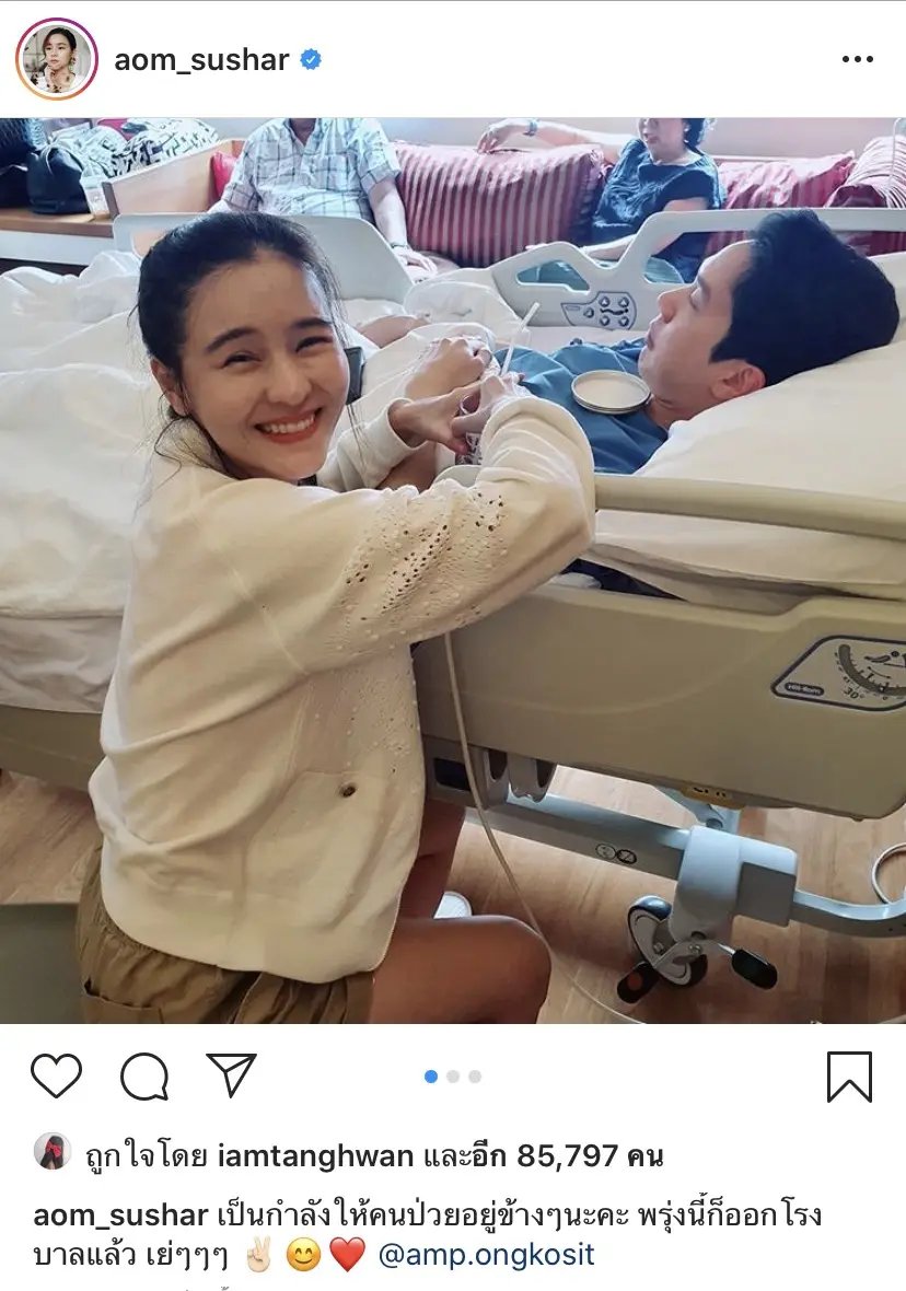 ล่าสุดสาวออมได้โพสต์ภาพของหนุ่ม แอมป์ ที่นอนป่วยอยู่บนเตียงพร้อมแคปชั่น