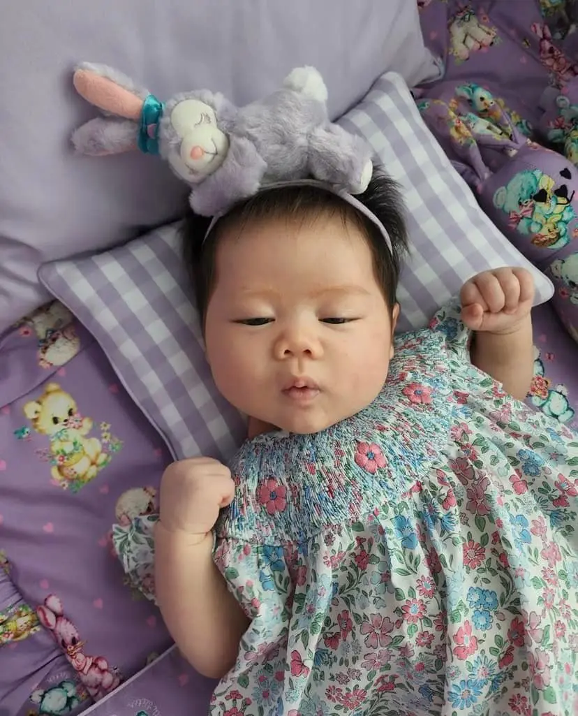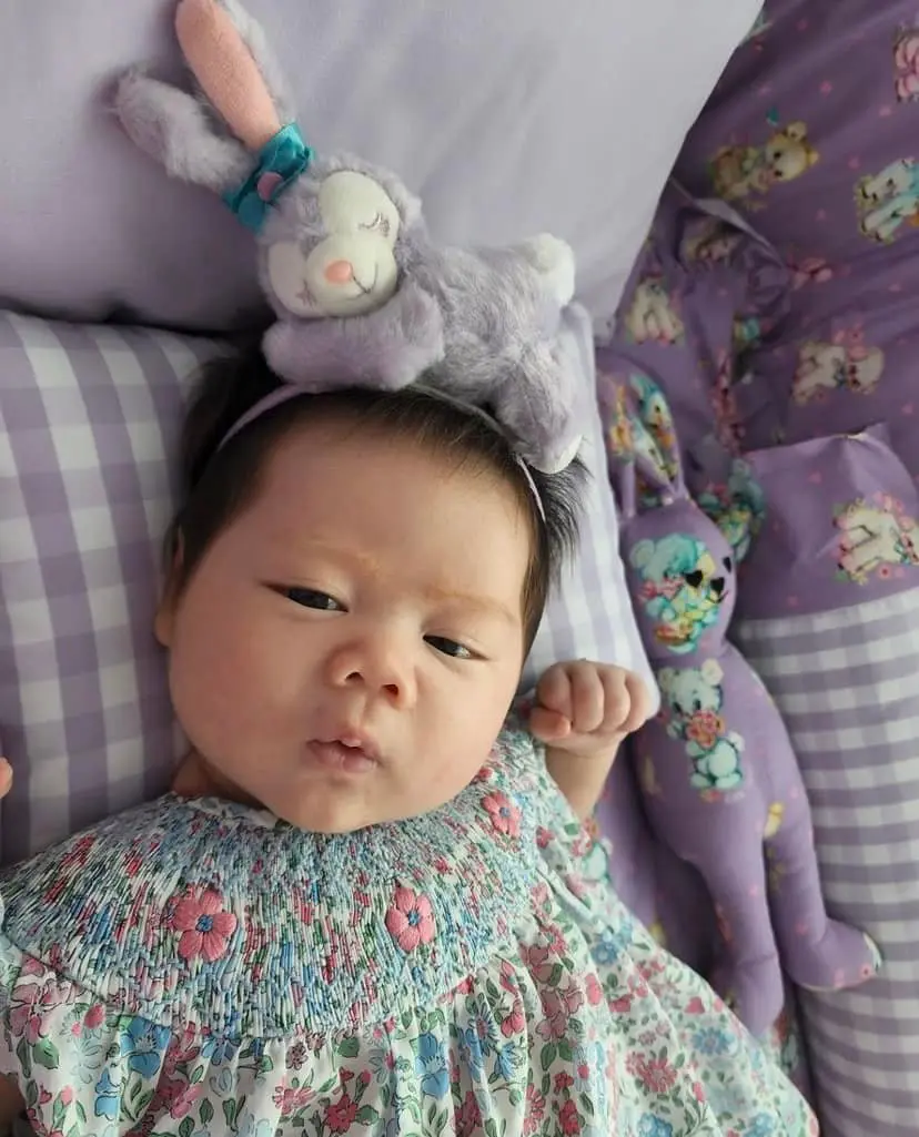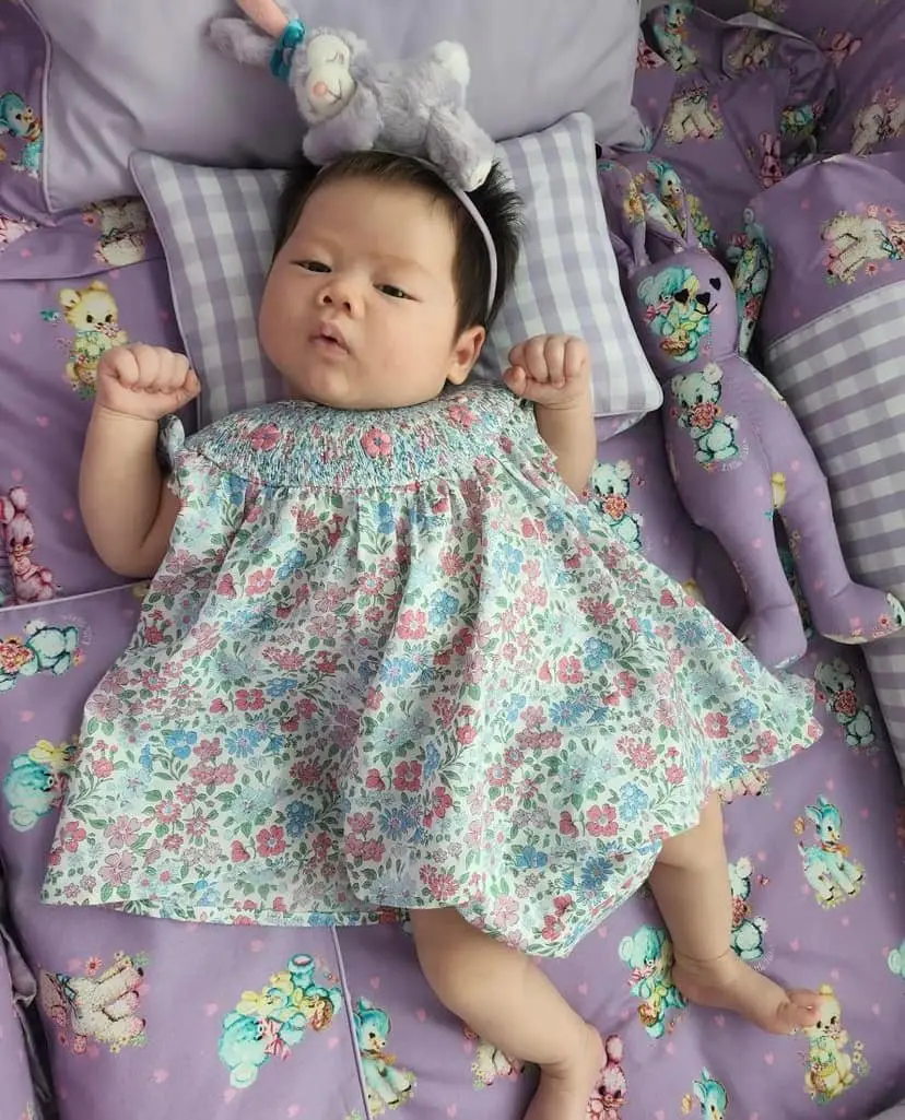 ซึ่งแม่ชมได้มีการเผยความถึงลูกสาวว่า ผิวเค้าไปทางฝรั่ง ขาว ชมพู ผมเยอะกว่าพี่ 2 คนรวมกันตอนเกิด แล้วก็เค้ามีประกายทองๆตรงปลายด้วย คิดว่าผิวกับผมมาแน่ๆ แต่เครื่องหน้ายังต้องลุ้น