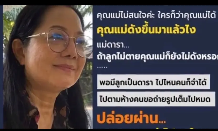ยังคงเป็นประเด็นวิพากษ์วิจารณ์พูดถึงกันอยู่ตอนนี้สำหรับปมคดีนักแสดงสาว แตงโม นิดา เสียชีวิตจากการพลัดตกเรือสปีดโบ๊ตเมื่อวันที่ 24 ก.พ. 2565 ขณะเดียวกันด้านคุณแม่แตงโม ก็ได้ออกมาให้สัมภาษณ์กับสื่อว่า ใครก็ว่าคุณแม่ได้ คุณแม่ดังขึ้นมาแล้วไง แม่ดารา ถ้าลูกไม่ตายคุณแม่ก็ยังไม่ดังหรอกใช่ไหมคะ พอมีลูกเป็นดาราไปไหนคนก็จำได้ ไปตามห้างคนขอถ่ายรูปเต็มไปหมด ปล่อยผ่าน ใครด่าเราได้ อย่าไปสนใจ