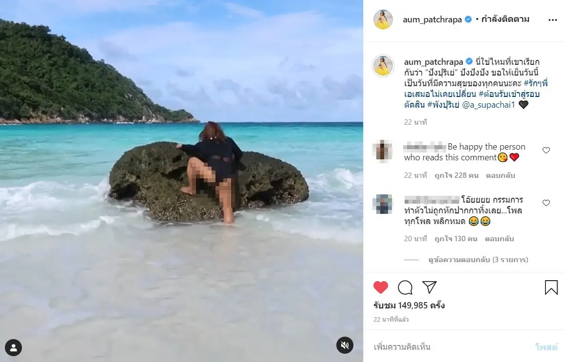 เป็นอีกหนึ่งทริปที่แพ็คทีมเที่ยว สำหรับ อั้ม พัชราภา ที่ควงเเก๊งเพื่อนไปเที่ยวทริปภูเก็ต โดยในไอจีของเจ้าตัว ก็ได้มีการโพสต์ภาพใส่ชุดว่ายน้ำ รับลมทะเลแบบสุดปัง !! เรียกได้ว่า เป็นการลงภาพที่หลายคนถึงกับว้าว! ในความแซ่บ พร้อมกราบหุ่นเเม่คือดีมากกกก ล่าสุด อั้ม พัชราภา ได้โพสต์คลิปสุดฮา เพราะเจ้าตัวได้ถ่ายคลิปแกล้งผู้จัดการอย่าง พี่เอศุภชัย พร้อมเผยเเคปชั่นผ่านอินสตาแกรมส่วนตัวว่า “นี่ใช่ไหมที่เขาเรียกกันว่า “ปังปุริเย่” ปังปังปัง ขอให้เย็นวันนี้เป็นวันที่มีความสุขของทุกคนนะคะ #รักๆพี่เอเสมอไม่เคยเปลี่ยน #ต้อนรับเข้าสู่รอบตัดสิน #พังปุริเย่ @a_supachai1 ?”