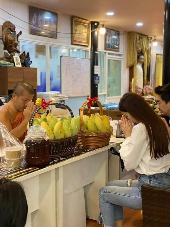 และ ” #พระอาจารย์ได้ให้พรคุณโยมอั้ม มาถึงวัดบอก ขอมะม่วงที่วัดท่าไม้ สองตระกร้อ ค่ะ .อาตมาได้มอบผลไม้มะม่วงให้ น่าภูมิใจอย่างยิ่ง เพราะคุณแม่คุณพ่อและคุณโยมอั้ม บอกว่า มะม่วงที่ปลูกในพื้นที่ กระทุ่มแบน สมุทรสาคร อร่อยมากๆ รสชาติดีมาก กรอบอร่อย หวานพอดี .ถึงจะเป็นคนดังระดับประเทศ แต่ก็เรียบง่าย ทานขนมไทย อาหารไทย กตัญญูมาก ชอบทำบุญ ชอบทำทานมากๆ จิตใจสูงมาก สร้างกุศลสะสม ทำเสมอ . Cr. ปราชญา บูรพาชลทิศน์ “