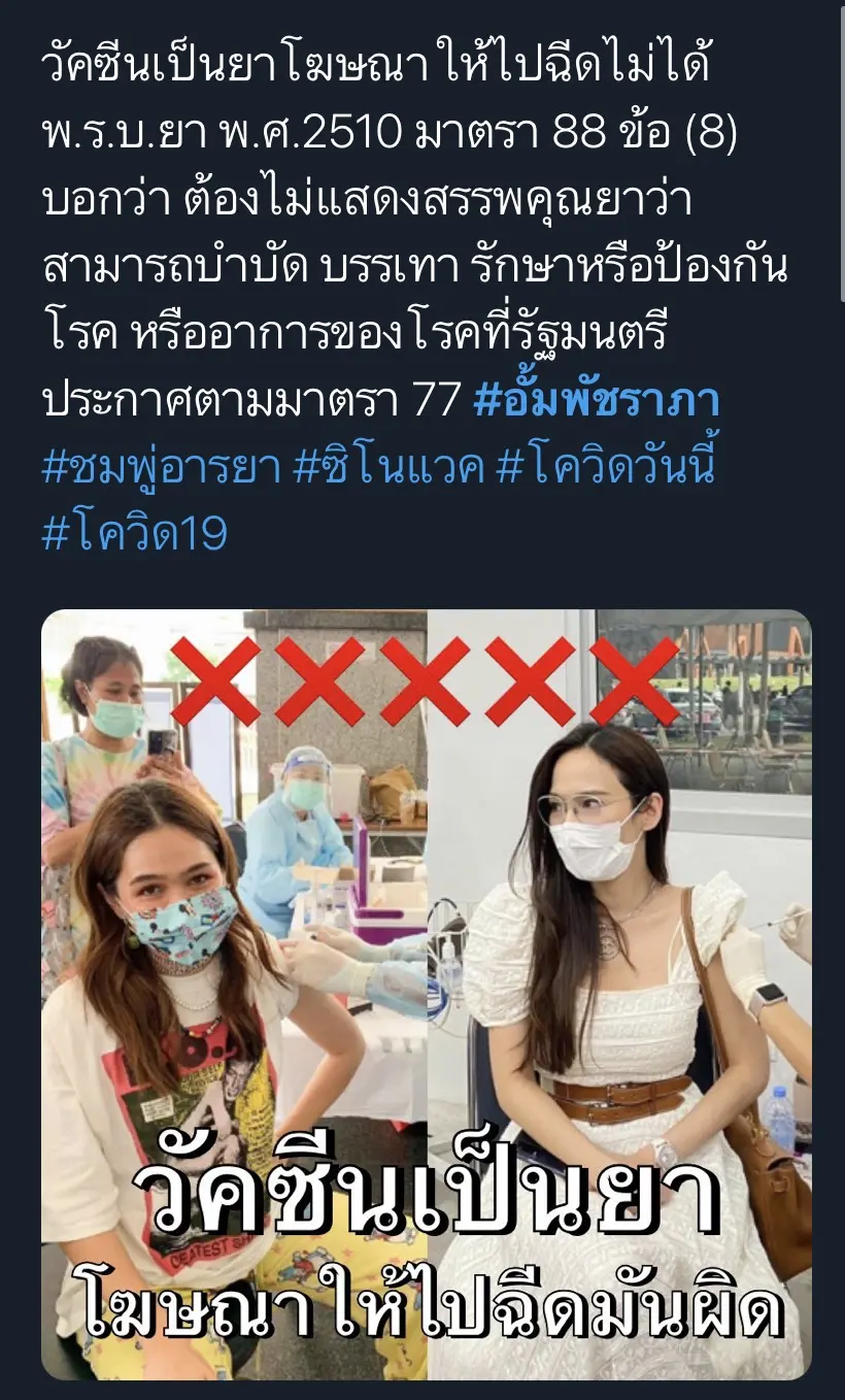 แฮชแท็ก ชมพู่ อารยา ติดเทรนด์ทวิตเตอร์อันดับ 1 ชาวเน็ตจวกเละ ยุยงให้ฉีดวัคซีนคุณภาพต่ำ