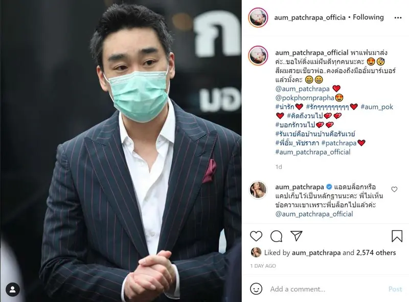 โดยก่อนเกิดดราม่า แอดมินมีการโพสต์รูปของไฮโซพก พร้อมเขียนแคปชั่นว่า “พาแฟนมาส่งค่ะ..ขอให้ติ่งแม่ฝันดีทุกคนนะคะ สีผมสวยเชียวพ่อ..คงต้องถึงมืออั้มบาร์เบอร์แล้วมั้งคะ @aum_patchrapa @pokphornprapha” ซึ่งสาวอั้มก็มาคอมเมนต์เล่นกับแอดมินด้วยว่า “หล่อเลยค่ะ”
