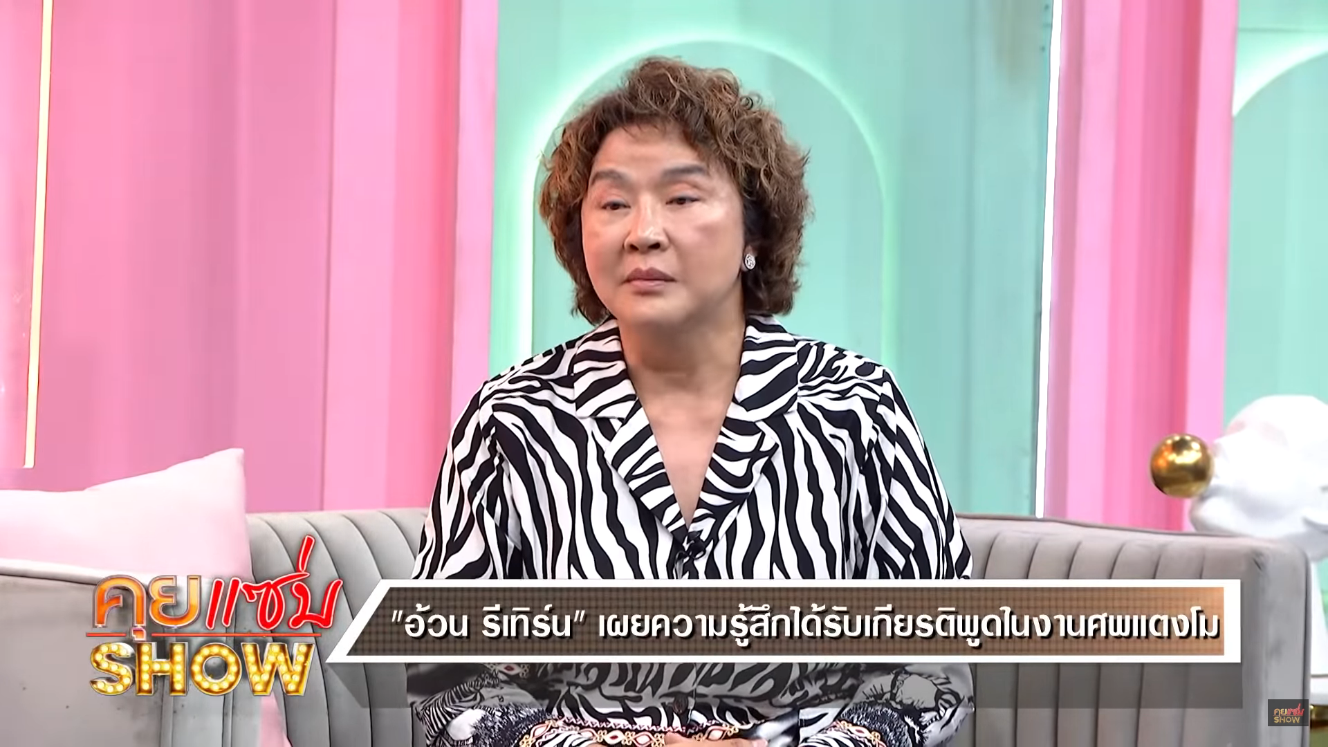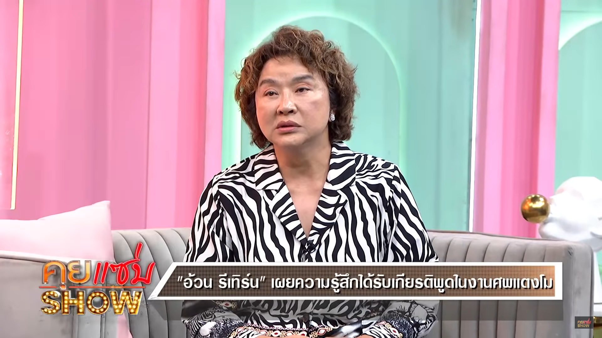 โดยทางด้านของ หนิง ปณิตา พิธีกรผู้ดำเนินรายการ ได้การถามกลับไปว่า แล้วได้มีการขออนุญาตทางด้านของคุณแม่แตงโมแล้วหรือยัง ซึ่งทางด้านของ อ้วน รีเทิร์น ได้พูดเลยว่า “ฉันไม่ขอหรอก ฉันจะขอทำไม ในเมื่อฉันจะพูดความรู้สึกที่ฉันมีต่อแตงโม ฉันจำเป็นจะต้องขอใครหรอ ถ้าเกิดสมมุติว่าฉันต้องขอ ก็จะขอให้วิญญาณของแตงโมมารับรู้ถึงความรู้สึกของแม่ทุกคน หลาย ๆ คนไม่ใช่เราคนเดียว ว่าแม่ทุกคนยังรักและก็คิดถึงอยู่ จนกว่าเราจะได้เจอกันเลยแหละ”