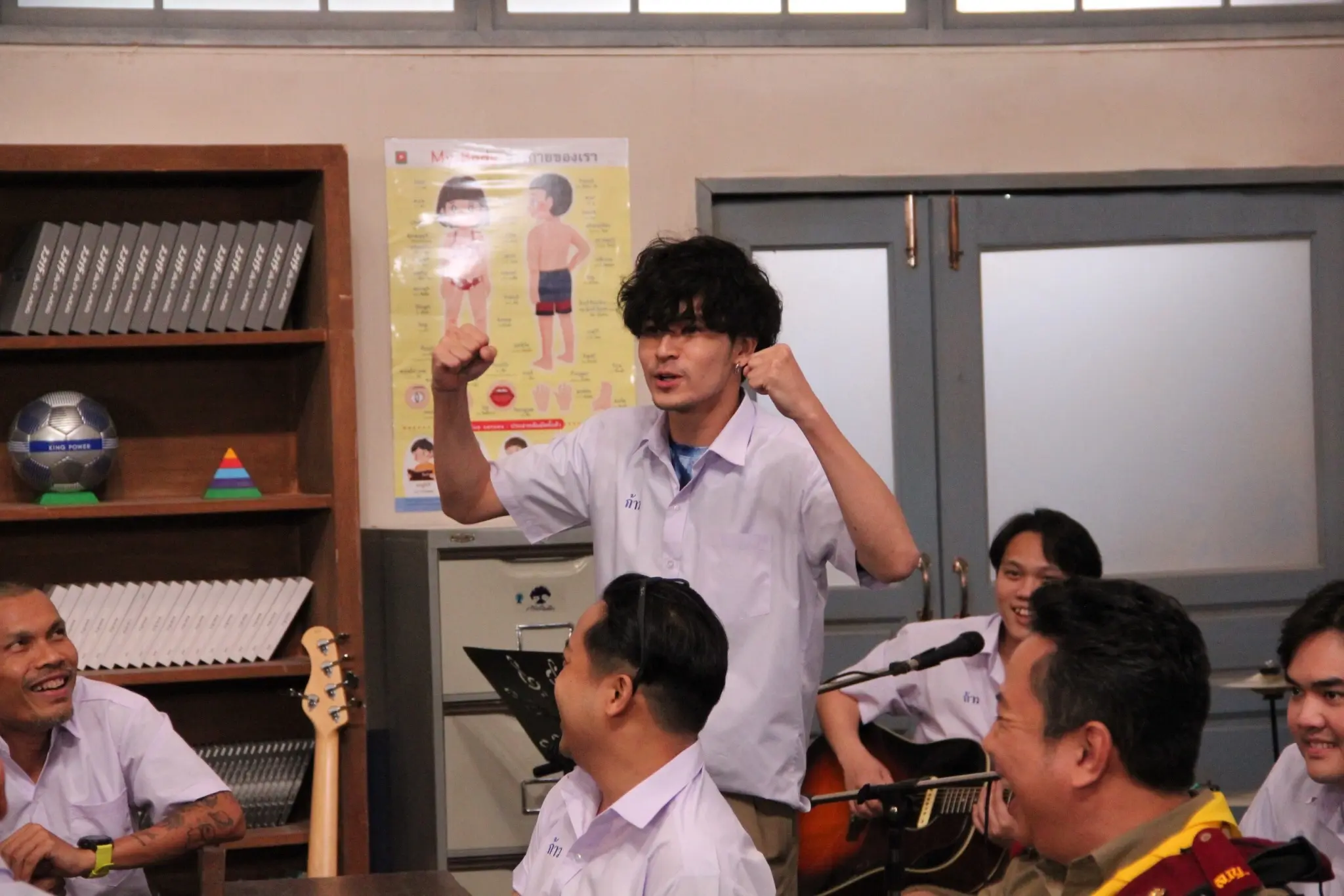 พร้อมโชว์ดนตรีสดในสไตล์วง Bad Baboon ในเพลงสุดมันส์ที่ หนุ่มเก้า และเพื่อนๆ ต่างแท็คทีมร้องเล่นกันสดๆ ไม่ว่าจะเป็น เพลงอับดุล, แดงกับเขียว รวมไปถึงเพลง ไปให้สุด ขอบฟ้า งานนี้ทำเอาทุกคนในห้องเรียนลุกขึ้นมาเต้นโยกตามกันอย่างคึกคักสุดๆ และ ในห้องเรียนสัปดาห์นี้ยังเสริมทัพความสนุกกับศิลปินชื่อดังมากมาย ไม่ว่าจะเป็น ลาบานูน ที่มาร้องเล่นเพลงดังคุ้นหูให้ฟังกันสดๆ รวมไปถึงนักแสดงสาว เต้ย จรินทร์พร จุนเกียรติ ก็จัดเพลงเพราะๆ ซึ้งๆ มาให้ได้ฟังกันด้วย