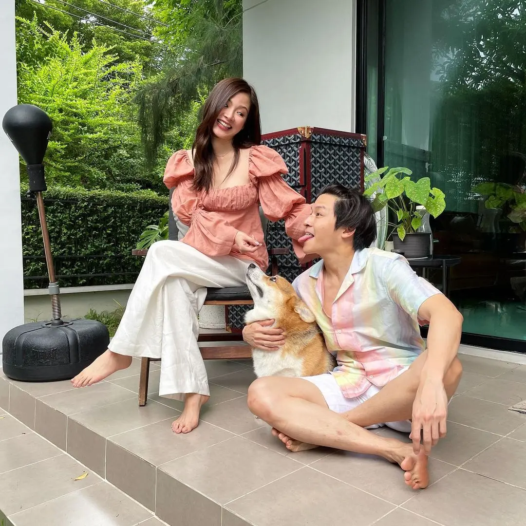 เเละก็ตามปกติที่จะต้องมีการถ่ายรูปร่วมกัน มาร์ช ก็ได้ใส่เเคปชันเป็นการถามเเซว ใบเฟิร์น เล่นๆว่า ไม่รู้ว่า มาหาคน หรือ มาหาหมา🤪👊🏻 ซึ่งสาวใบเฟิร์นก็ตอบชัด ว่า มาหาหมา เจ้า พ็อกบา สุนัขคอร์กี้ของมาร์ชนั้นเอง