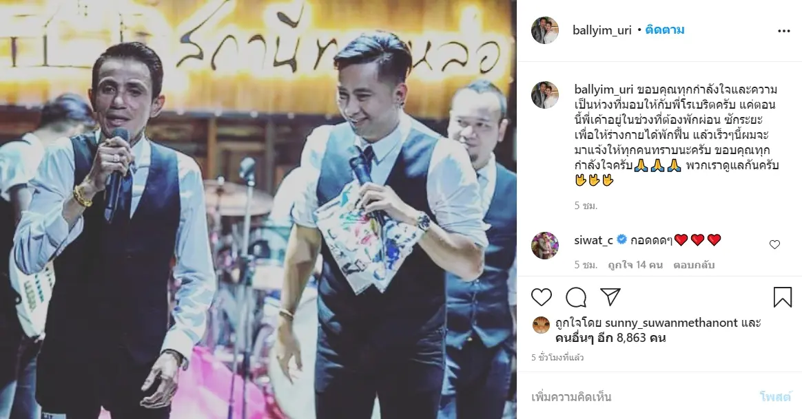 ล่าสุด บอล เชิญยิ้ม โพสต์ขอบคุณทุกกำลังใจที่มอบให้กับเพื่อนรักร่วมวงการอย่าง โรเบิร์ตสายควัน ผ่านอินสตาแกรมว่า “ขอบคุณทุกกำลังใจและความเป็นห่วงที่มอบให้กับพี่โรเบริตครับ แค่ตอนนี้พี่เค้าอยู่ในช่วงที่ต้องพักผ่อน ซักระยะ เพื่อให้ร่างกายได้พักฟื้น แล้วเร็วๆนี้ผมจะมาแจ้งให้ทุกคนทราบนะครับ ขอบคุณทุกกำลังใจครับ??? พวกเราดูแลกันครับ???”