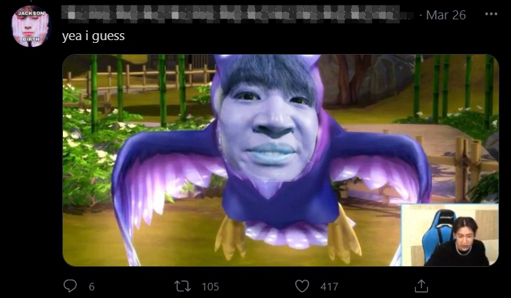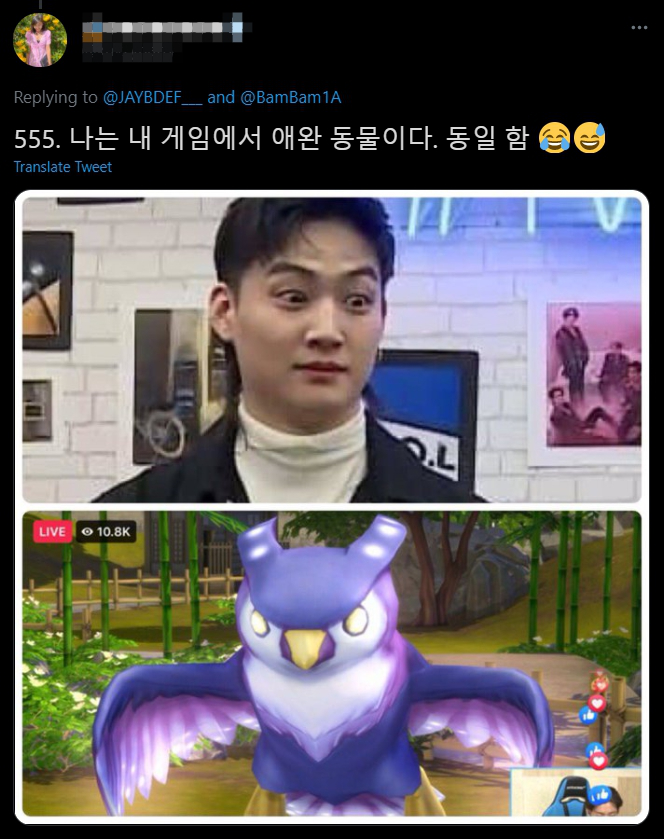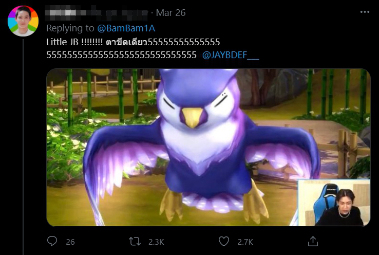 หลังจากจบไลฟ์ไม่นานนัก หนุ่มแบมแบมก็ได้มาทิ้งทวนลงรูปควันหลงกันอีกครั้งผ่านทางทวิตเตอร์ โดยเป็นภาพของเจ้าน้องนกฮูกหน้าตาคุ้นเคย พร้อมแคปชั่นว่า “Little JB #TheSims4”