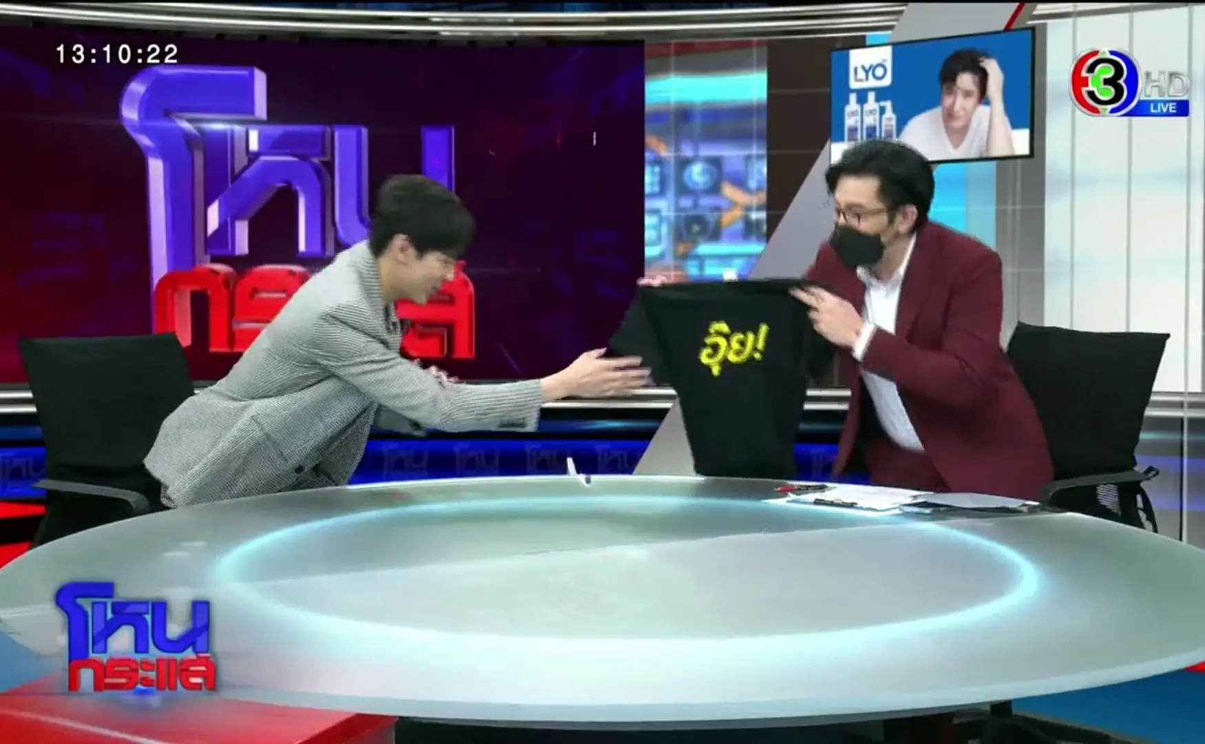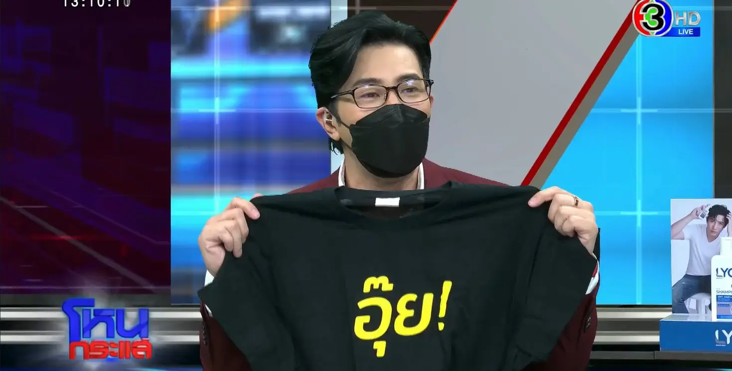 หนุ่ม กรรชัย ถึงกับไขข้อสงสัยหลังมอบเสื้อที่ระลึกให้ แบมแบม หรือ แบมแบม กันต์พิมุกต์ พร้อมถาม คำว่าอุ๊ยบนเสื้อ คืออะไร