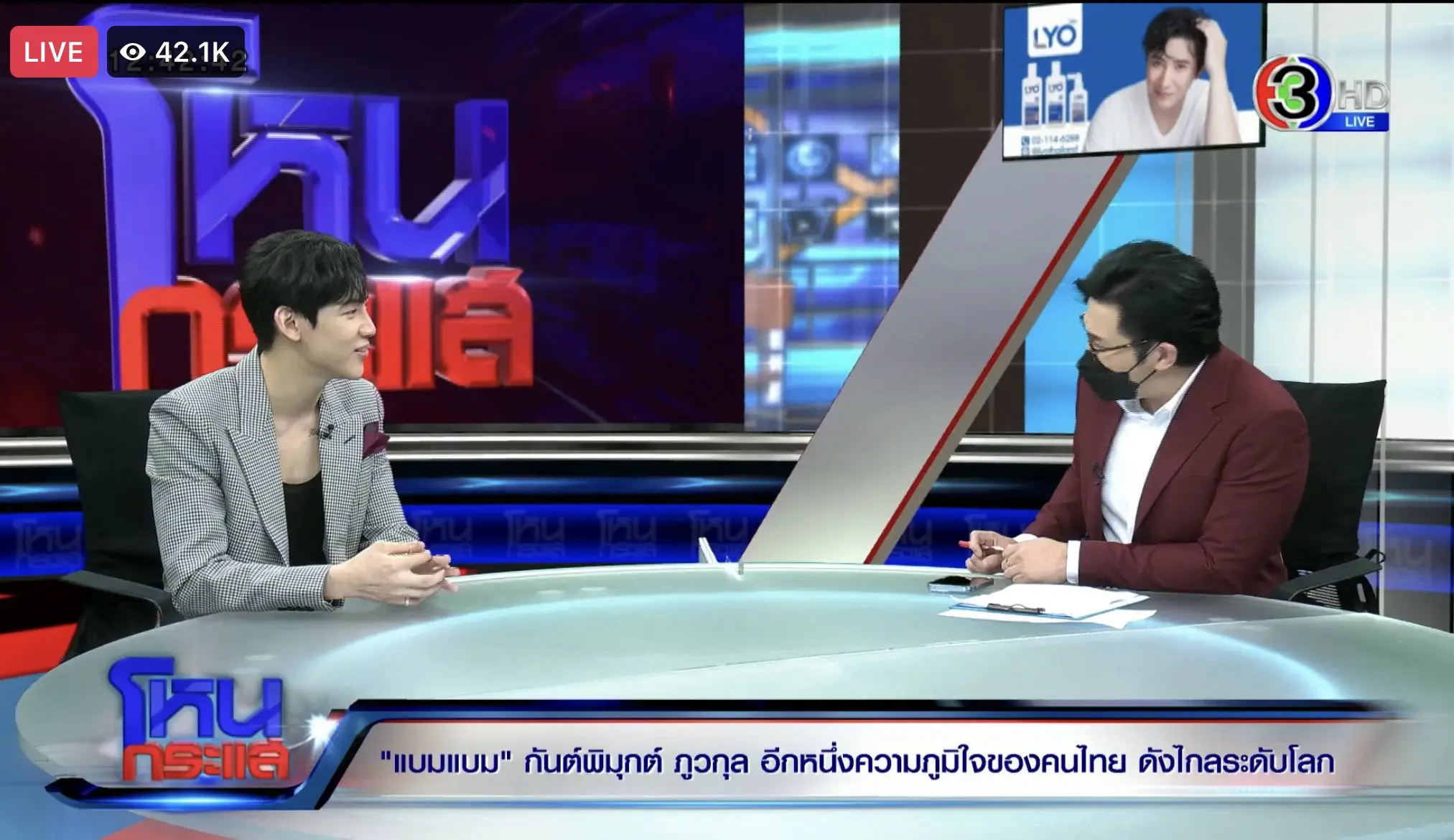 ซึ่งล่าสุดวันนี้ 14 เมษายน แบมแบม ได้มาร่วมรายการโหนกระแส พร้อมสัมภาษณ์ทุกประเด็นไม่ว่าจะผลงานหรือเรื่องส่วนตัวไปกับ หนุ่ม กรรชัย จนมีคนดูมากกว่า 5 หมื่นในโลกออนไลน์ และยังติดเทรนด์อัน 1 ไปเป็นที่เรียบร้อยกับแฮชแท็ก #BamBamxโหนกระแส