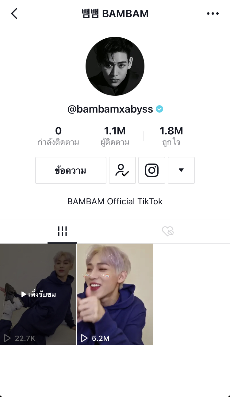 หลังจากเปิดตัวแอคเคาท์ติ๊กต๊อก (TikTok) ในชื่อ bambamxabyss พร้อมประเดิมคลิปแรกไปเมื่อช่วงเย็นวานนี้ (4 พ.ค.) เหล่าอากาเซต่างก็หลั่งใหลเข้าไปกดฟอลโฟลว์กันอย่างล้นหลามจนขณะนี้มียอดผู้ติดตามกว่า 1 ล้านแล้ว!