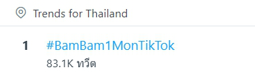 ด้านแฟนคลับก็ได้ติดแฮชแท็ก #BamBam1MonTikTok ฉลองให้กับความปังในครั้งนี้จนขึ้นสู่อันดับ 1 เทรนด์ทวิตเตอร์เป็นเวลากว่า 2 ชั่วโมงแล้ว ซึ่งหนุ่มแบมแบมเองก็ได้อัปโหลดคลิปที่สองตามมาติดๆ ให้ชาวนกได้เพลิดเพลินกันต่อแบบนอนสต็อป!