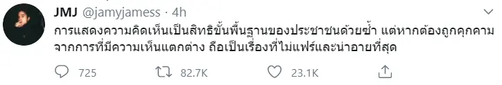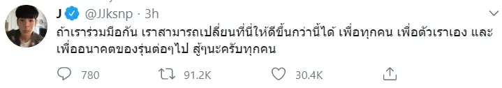 งานนี้เหล่าประชาชน เเละเยาวชนรุ่นใหม่ต่างเข้ามาคอมเมนต์กันเป็นจำนวนมาก ทั้งนี้ยังมีเพื่อนร่วมวงการอย่าง เจมส์ ธีรดนย์ , เจเจ กฤษณภูมิ ออกมาเเสดงจุดยืนและเป็นกระบอกเสียงด้วยเช่นกัน