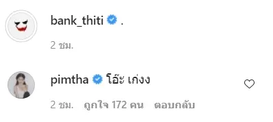ล่าสุด หลังจากสถานการณ์คลี่คลาย แบงค์ ธิติ ได้มีการโพสต์คลิปขณะที่เจ้าตัวกำลังเล่นเปียโน ทำเอาบรรดาแฟนคลับต่างแห่คอมเมนต์ชื่นชมกันยกใหญ่ แต่ที่จะหลุดโฟกัสไปไม่ได้นั่นก็คือคอมเมนต์ของ พิมฐา ฐานิดา เพื่อนสาวคนสนิท ที่ได้เข้ามาคอมเมนต์ว่า โอ๊ะ เก่งง ยิ่งสร้างความจิ้นให้กับแฟนคลับของทั้งคู่ยิ่งขึ้นไปอีกเลยทีเดียว