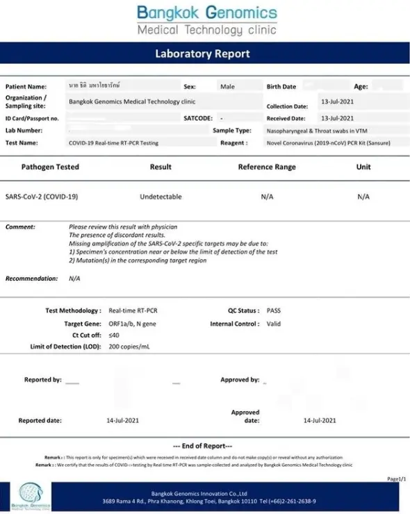 แบงค์ ธิติ โชว์ผลตรวจโควิด19 ไม่สามารถแพร่เชื้อได้ และ ไม่มีการติดเชื้อในปัจจุบัน