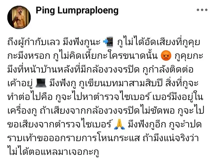 พิงรีบแชร์โพสต์ดังกล่าวลงเฟซบุ๊ก พร้อมตอบโต้เดือดว่า