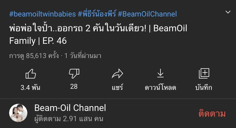 ขอแสดงความยินดีกับหนุ่ม บีม กวี และภรรยาสาว ออย อฏิพรณ์ ด้วยนะจ๊ะ ที่ล่าสุดได้ประกาศผ่านช่องยูทูป Beam-Oil Channel ว่าถูกหวยสลากกินแบ่งรัฐบาลในงวดวันที่ 1 ตุลาคม ที่ผ่านมา