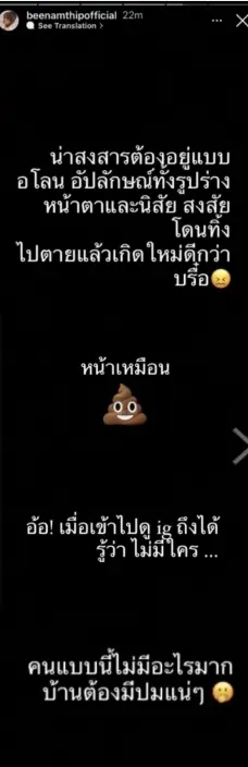 น่าสงสารต้องอยู่แบบอโลน อัปลักษณ์ทั้งรูปร่างหน้าตาและนิสัย สงสัยโดนทิ้ง ไปตายแล้วเกิดใหม่ดีกว่า บรื๋อ โดนทิ้ง หน้าเหมือน (อิโมจิรูปขี้) อ้อ! เมื่อเข้าไปดู ig ถึงได้ รู้ว่า ไม่มีใคร . .. คนแบบนี้ไม่มีอะไรมาก บ้านต้องมีปมแน่ๆ