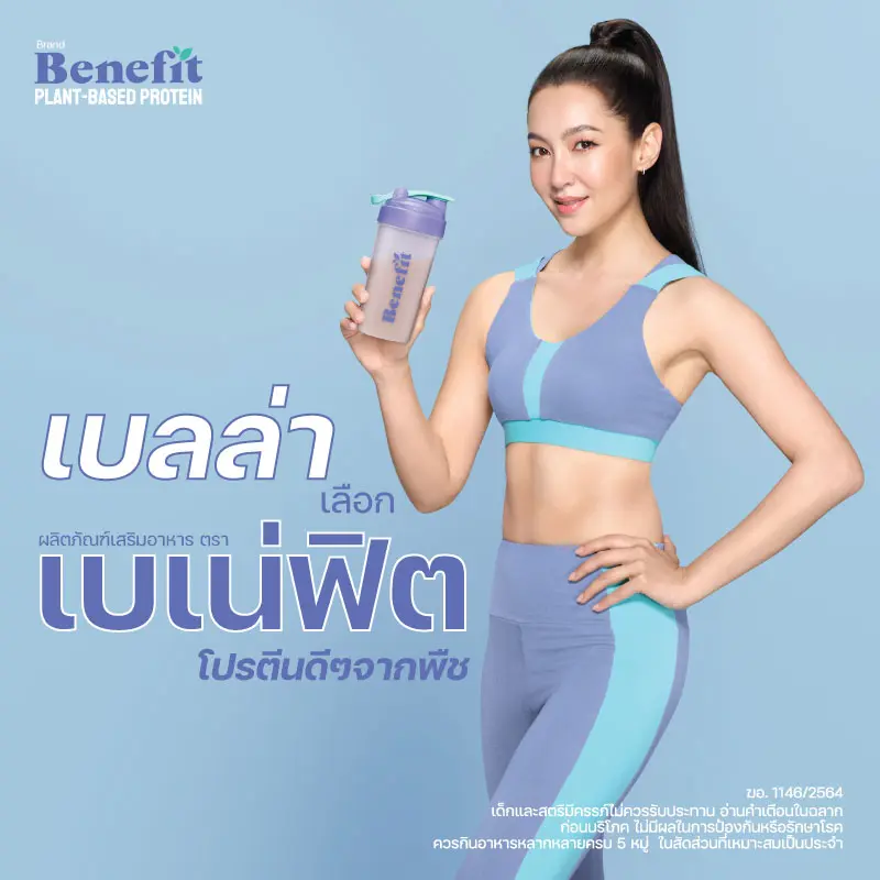 ทั้งนี้ เบลล่ายังได้กล่าวว่า “เนื่องจากเบลเป็นคนที่มีเวลาออกกำลังกายก็จริงแต่ส่วนมากก็จะติดประชุม อ่านบท เเละกิจกรรมเยอะเเยะมากมาย ซึ่งเบลจึงเลือก Benefit Protein ดื่มแทนมื้อเย็น เพื่อดูเเลรูปร่างของเบลนั้นเอง อีกทั้ง เบลยังตั้งใจออกเเบบลวดลายแก้วเชคด้วย ซึ่งก็ทุ่มเทมากๆสำหรับการเป็น Brand Ambassador ของ Benefit Protein”