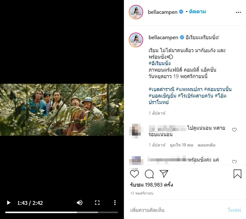 ทำเอาอีเรียมอย่างนางเอกสาว “เบลล่า ราณี แคมเปน” ที่นอกจากจะหายเหนื่อยที่ทุ่มสุดตัวกับทุกฉากทุกตอนแล้ว ยังเตรียมตัวขึ้นแท่นนางเอกร้อยล้านอีกด้วย งานนี้ได้รับคำชมรัวๆเกินคาด นอกจากเบลล่าแล้ว ยังมีความฮาของนักแสดง อย่าง “แพท ณปภา ตันตระกูล”, “โอ๊ต ปราโมทย์ ปาทาน” ,”ค่อม ชวนชื่น”, “บอล เชิญยิ้ม”, “เดียริส สุภัทรภณ กสิกรรม” ที่พอมารวมตัวกันแล้วสุดจะบันเทิงจริงๆ