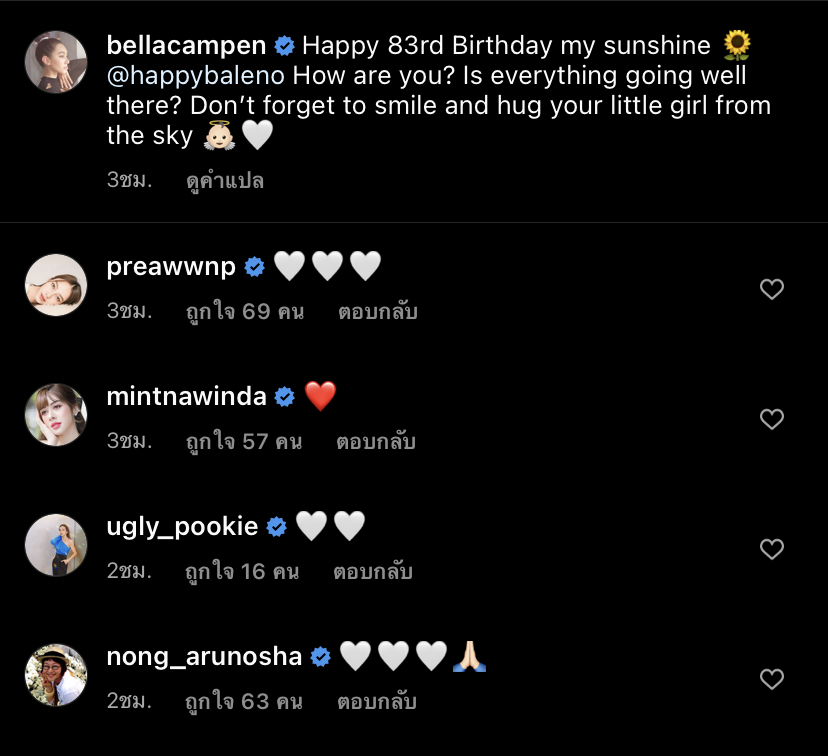 เบลล่า ราณี ฝากความคิดถึงไปยังคุณพ่อในวันเกิด83ปี บนฟ้าเป็นอย่างไงบ้าง อย่าลืมที่จะยิ้มและโอบกอดลูกสาวจากบนฟ้าด้วย ด้านเพื่อน ๆ แห่ร่วมอวยพร