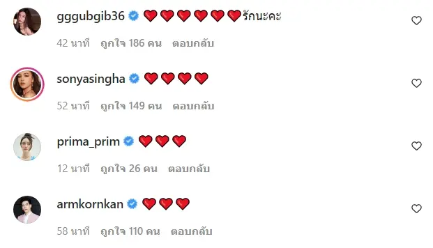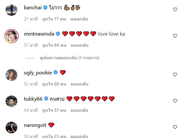 งานนี้มีเพื่อนๆ พี่ๆ ในวงการมากมายหลายคน ต่างก็เข้ามาคอมเมนต์ให้กำลังใจกับทาง เบลล่า รวมถึงแฟนคลับที่ติดตามเจ้าตัว ซึ่งถือว่าเป็นคู่รักอีกคู่หนึ่งที่คบกันมายาวนานถึง 9 ปี แต่ก็เป็นการจบความสัมพันธ์กันด้วยดี เพราะตอนนี้ทั้งคู่ก็ยังคงฟอลโลวไอจีกันอยู่ตามปกติ