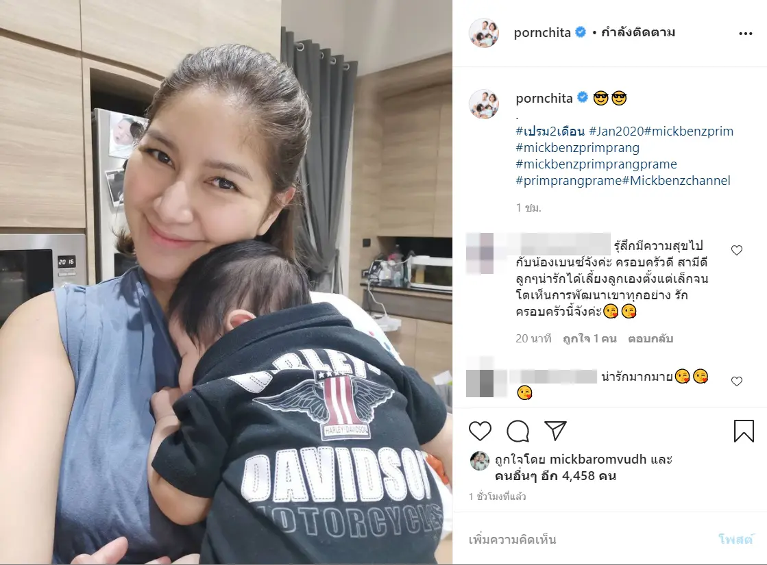 โดยล่าสุด คุณแม่ เบนซ์ ก็ได้ลงภาพอุ้มน้องเปรมตัวกลมไว้แนบอกพร้อมยิ้มหวานเจี๊ยบ ซึ่งเหล่าแฟนคลับก็ได้พากันมาคอมเมนต์ชื่นชมว่า ‘รุ้สึกมีความสุขไปกับน้องเบนซ์จังค่ะ ครอบครัวดี สามีดี ลูกๆน่ารักได้เลี้ยงลูกเองตั้งแต่เล็กจนโตเห็นการพัฒนาเขาทุกอย่าง รักครอบครัวนี้จังค่ะ??’, ‘น่ารักมากมาย???’, ‘ไม่ต้องบอกว่า..ลูกใคร.น่ารักสุดๆ❤️❤️❤️❤️’, ‘คุณแม่ลูกสามยังสวยปิ้งอยู่เรยคะ??❤❤❤❤❤’, ‘ตัวใหญ่มากน้องเปรม’, ‘น้องเปรมอ้วนจ้ำม้ำ’, ‘ก้อนกลมๆ❤️’