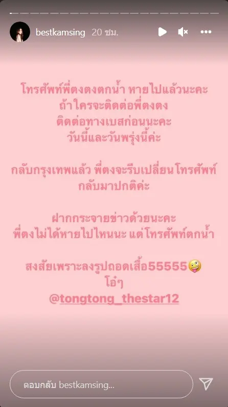 เบสท์ คำสิงห์ แจ้งข่าวถึงแฟนๆ หลัง ตงตง เดอะสตาร์ ทำโทรศัพท์เครื่องสำคัญตกทะเล เหตุถอดเสื้อโชว์ซิกแพคกลางไอจี