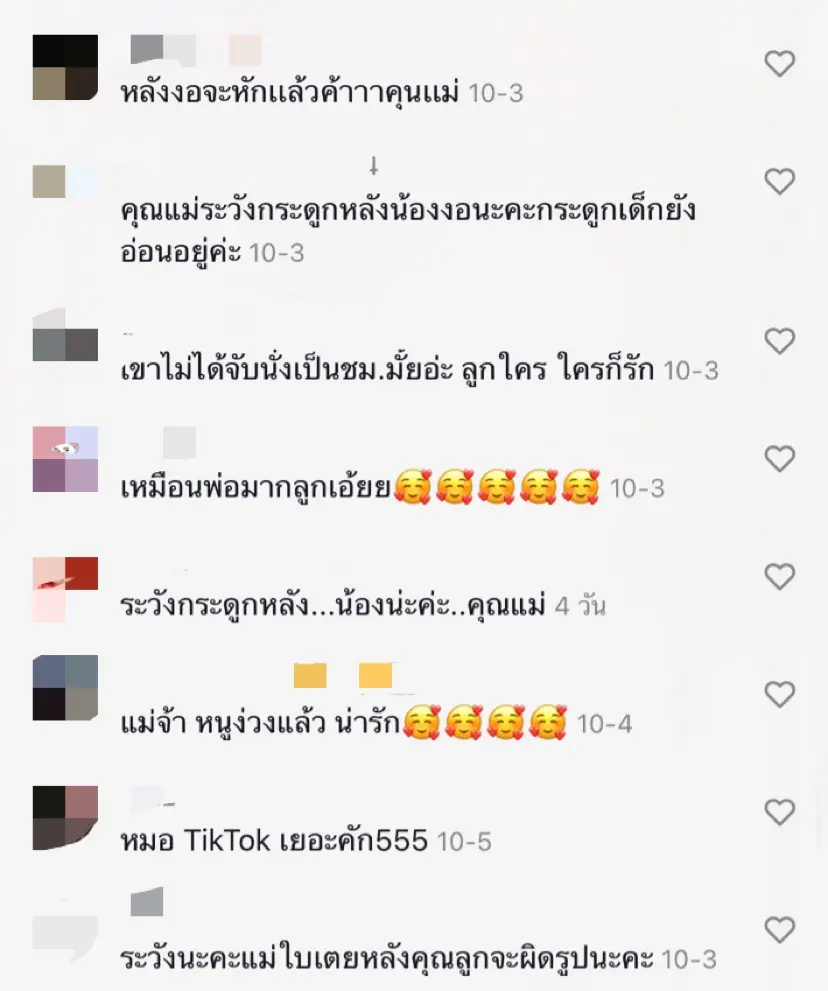 โดยมีการบอกให้ระวังทั้งในเรื่องการอุ้มน้องขึ้นมานั่ง รวมถึงระวังน้องแพ้เครื่องสำอาง ซึ่งก็มีชาวเน็ตบางส่วนที่ได้พูดอีกมุมว่า ใบเตย นั้นก็ต้องรู้จักการศึกษาเลี้ยงลูกอยู่แล้ว