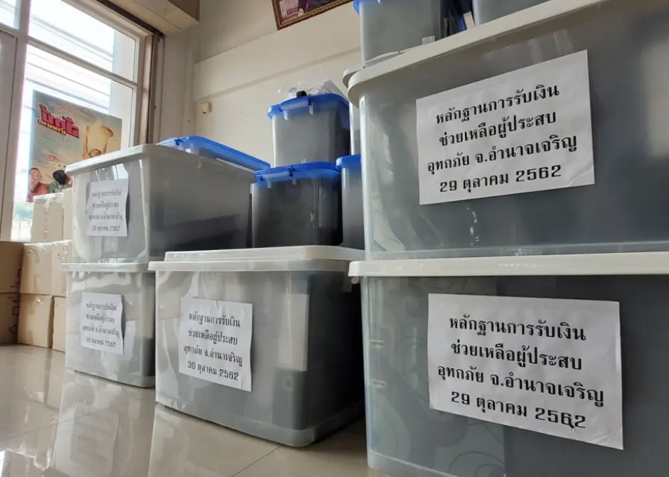 บิณฑ์ บรรลือฤทธิ์ ดารารุ่นใหญ่นักบุญ พาเปิดบ้านไปดูกองเอกสาร หลักฐานการรับเงินช่วยเหลือผู้ประสบภัยน้ำท่วมใน 6 จังหวัดภาคอีสาน เมื่อปี 2562 ได้แก่ จังหวัดอุบลราชธานี จังหวัด ยโสธร จังหวัดอำนาจเจริญ จังหวัด ร้อยเอ็ด จังหวัดมหาสารคาม จังหวัดขอนแก่น ซึ่งถูกเก็บไว้ในแฟ้มอย่างดีและถูกบรรจุใส่ไว้ในลังพาสติกกว่า 50 ลัง ที่เก็บไว้อย่างดีในสำนักงานแห่งหนึ่งย่านอำเภอบางพลี จังหวัดสมุทรปราการ