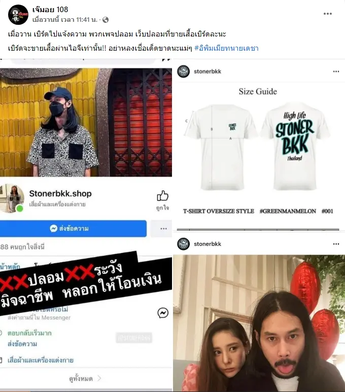 ล่าสุดหลังจากที่คอยโพสต์ประกาศเตือนคนที่ติดตามมาอยู่ตลอด เบิร์ด ได้เดินทางเข้าพบกับเจ้าหน้าที่เพื่อทำการแจ้งความกับเพจและไอจีปลอมที่เปิดขึ้นเพื่อหลอกลวงคนที่ต้องการซื้อเสื้อจากเบิร์ดจริง ๆ โดยเพจ เจ๊มอย108 ได้เป็นคนออกประกาศเรื่องนี้ ถ้าหากใครต้องการที่จะติดตามผลงานของเบิร์ด หรือรอการประกาศขายเสื้อรอบที่ 2 ให้ติดตามได้ที่ไอจีจริงของเบิร์ดเท่านั้น ( IG : stonerbkk )