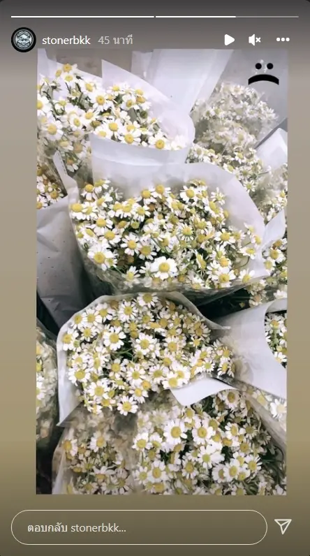 ซึ่งขณะที่กำลังแถลงการณ์อยู่นั้น เบิร์ด แฟน แตงโม ก็ได้ออกมาเคลื่อนไหวผ่านสตอรี่ไอจีของตัวเองด้วย รูปภาพของดอกไม้สีขาว สิ่งที่เป็นจุดสังเกตก็คือ อีโมจิหน้าเศร้า