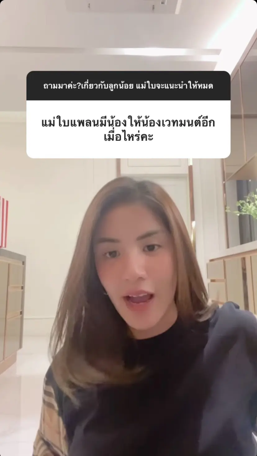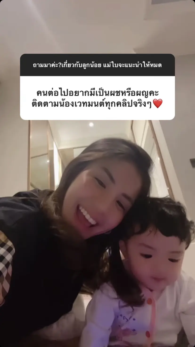 ใบเตย อาร์สยาม เดินทางมาจนถึง 8 เดือนแล้ว สำหรับ น้องเวทย์มน ลูกสาวสุดน่ารักของคุณแม่ ใบเตย อาร์สยาม ที่ล่าสุดได้มีการตั้งคำถาม Q&A ให้แฟนคลับได้เข้ามาถามเกี่ยวกับเรื่องลูก ซึ่งหลายๆคนก็ได้มีคำถามว่า แม่ใบมีแพลนจะมีน้องให้กับน้องเวทย์มนหรือเปล่า? , น้องคนที่ 2 มีตั้งชื่อไว้หรือยัง? , อยากมีเป็นผู้หญิงหรือผู้ชาย?